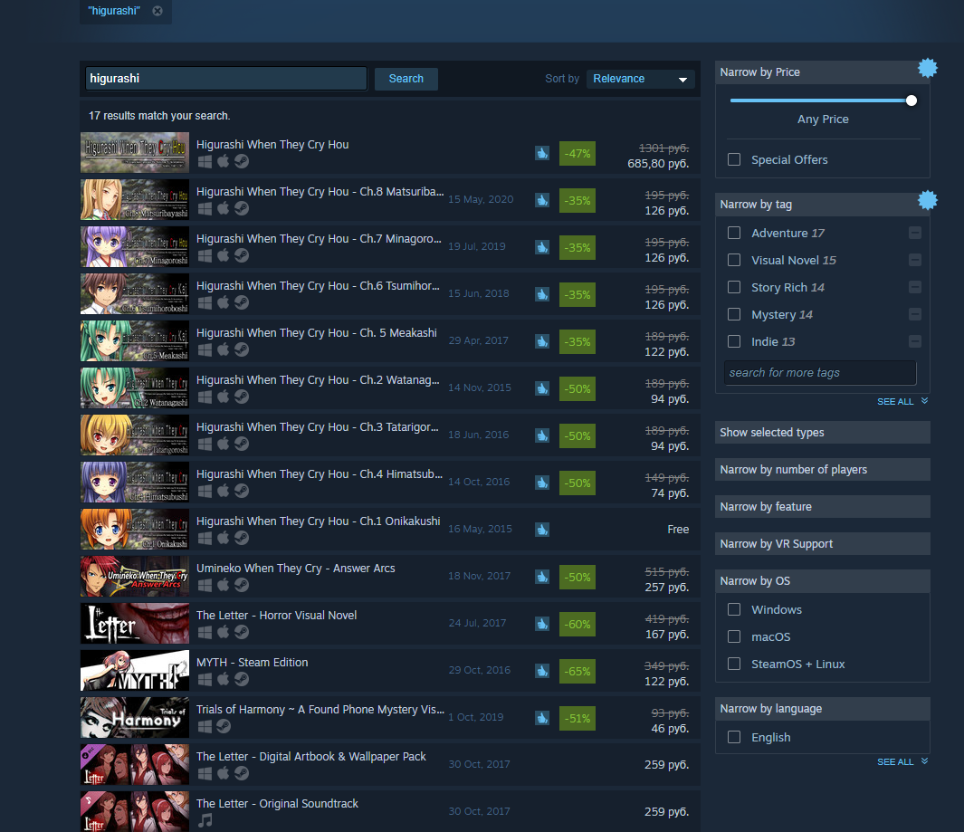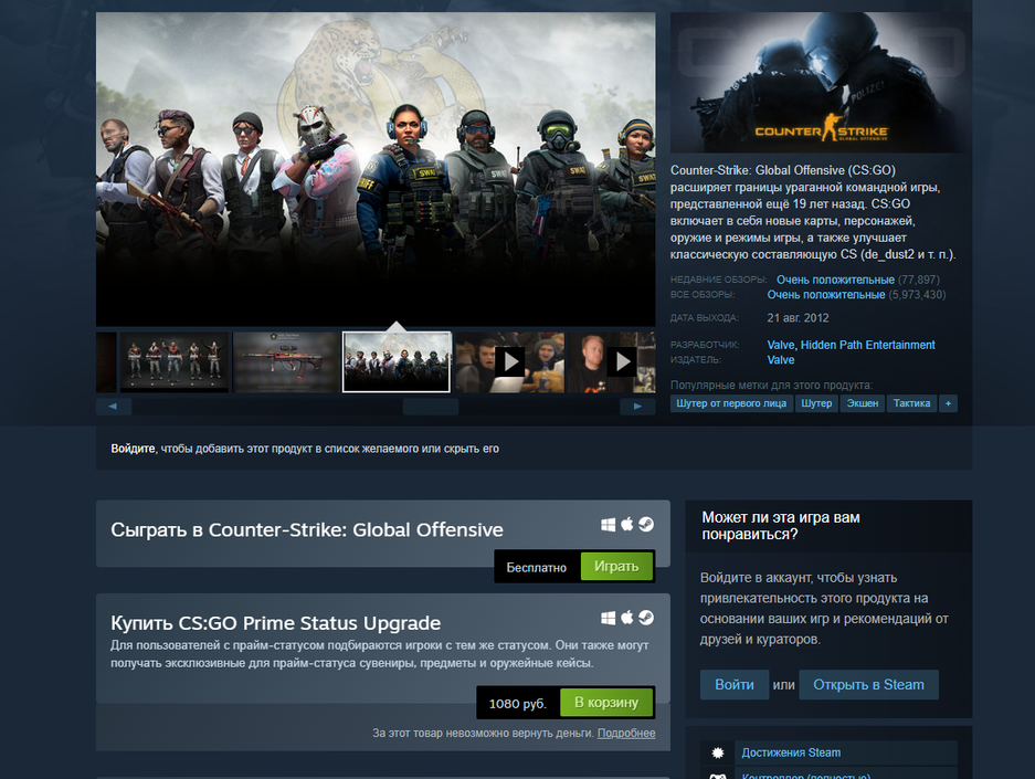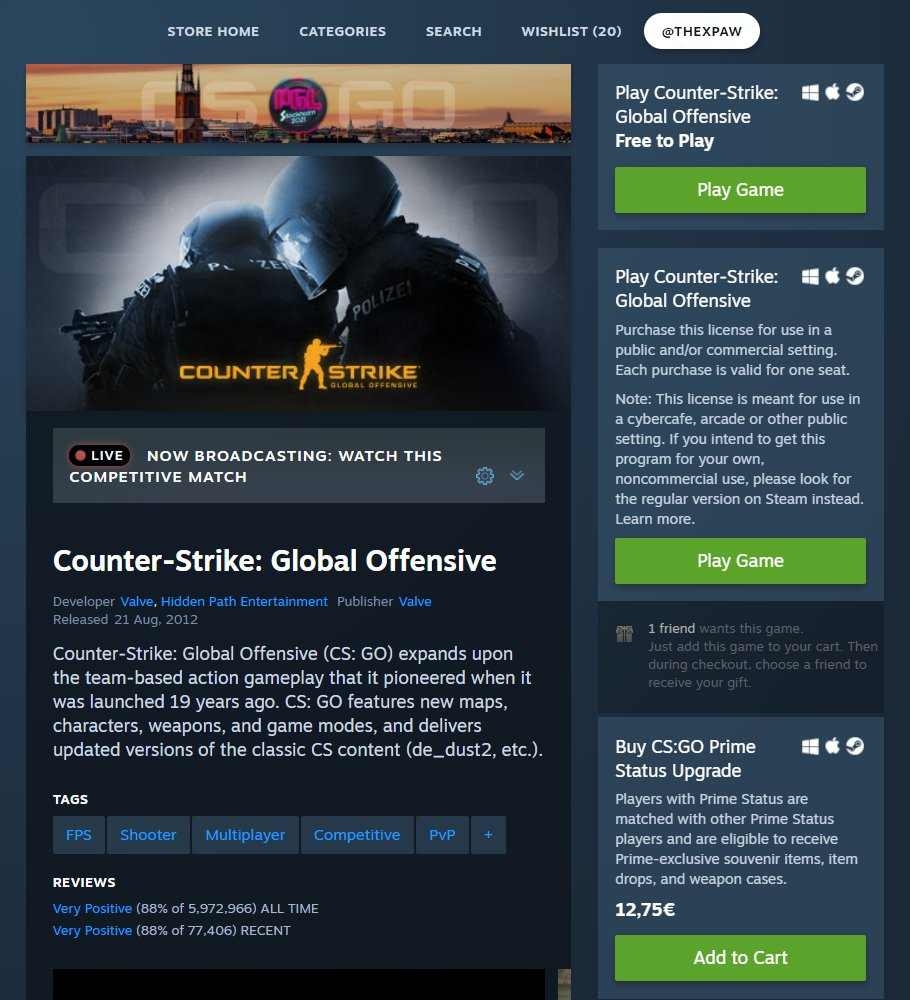 Для сравнения, страница CS:GO и поиска в ПК-версии Steam: