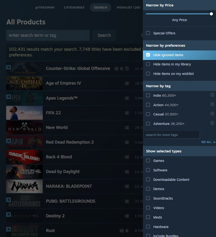 Он опубликовал несколько скриншотов нового режима. По сравнению с ПК-версией Steam, блоки с Покупкой и Запуском игры перенесли вправо, а краткое описание игры, теги и отзывы перенесли в нижнюю часть. Похоже, что теперь при поиске меню с фильтрами будет «выпадающим», а не видимым постоянно.