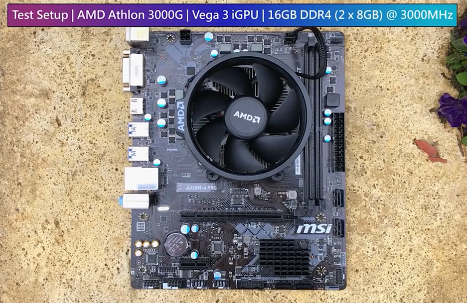 Использовался процессор AMD Athlon 3000G с графическим ядром Vega 3, в паре с 16 ГБ памяти (DDR4, 2 x 8 ГБ).