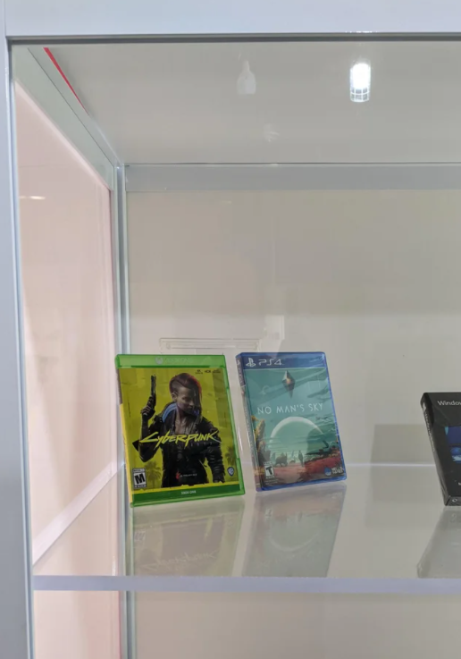 Диск с игрой разработчиков из CD Projekt RED стоит рядом с не менее известной игрой No Man’s Sky. Выстроенная спорной рекламной кампанией картина, которая явно завысила ожидания игроков, разбилась об релизную версию игры. Разработчики потратили несколько лет на то, чтобы исправить игру, работа до сих пор продолжается, а оценка в Steam постепенно растёт.
