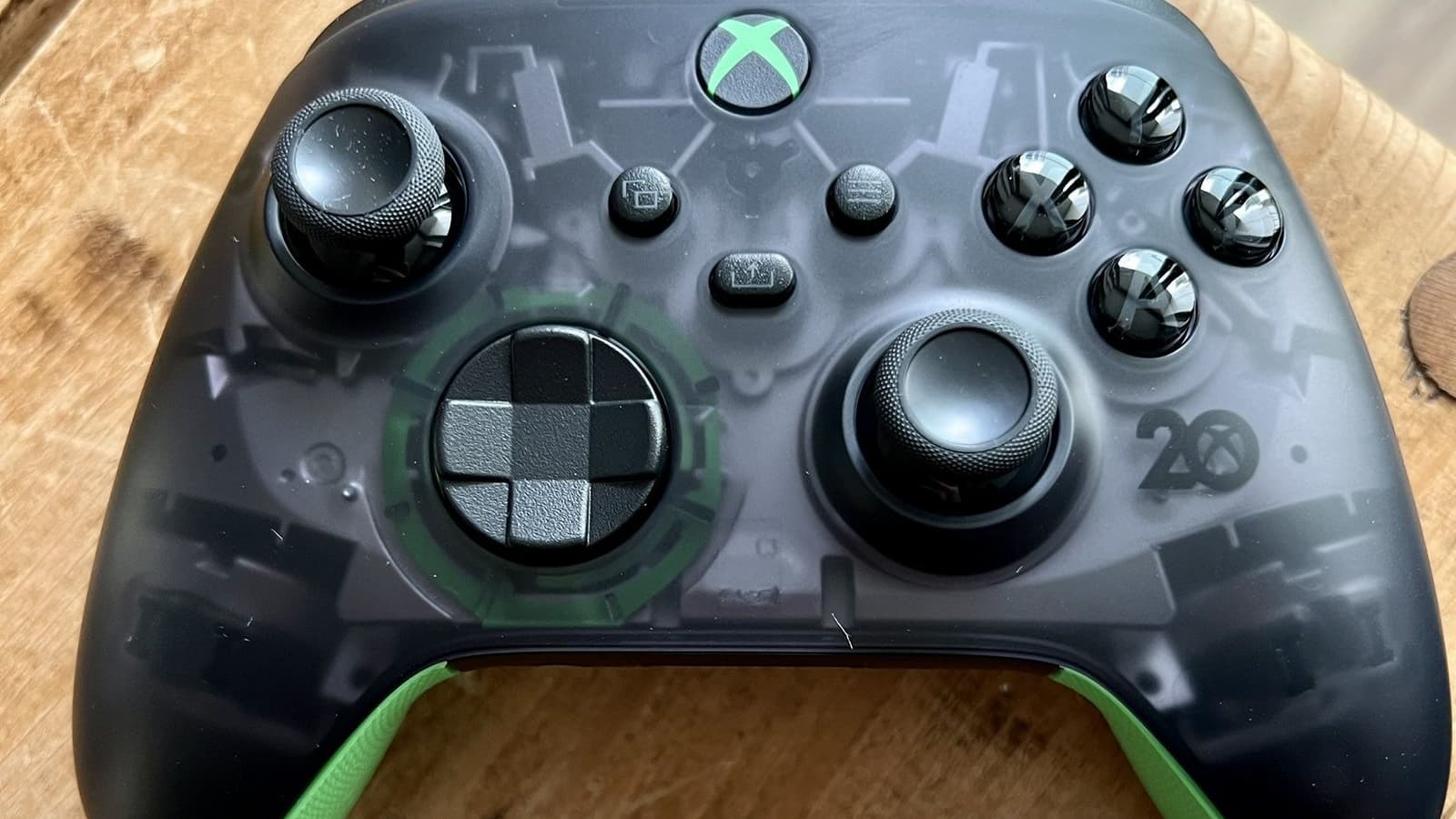 Лимитированная версия контроллера (есть и наушники) выполнена из прозрачного темного пластика и украшена зелеными элементами. По словам производителя, внешний вид вдохновлен дизайном оригинальной консоли Xbox, выпущенной двадцать лет назад.