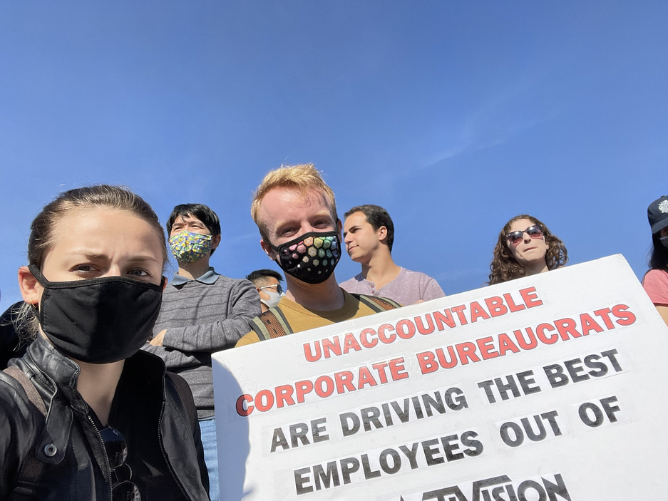 После расследования издания The Wall Street Journal, представившего исполнительного директора Activision Blizzard как укрывателя насильников и тирана, жестоко обращающегося с женщинами, сотрудники компании оперативно организовали протест рядом с главным офисом Blizzard в Иррвайне, в котором приняли участие 150 человек. Еще несколько десятков человек решили помахать транспарантами вблизи офиса Activision Blizzard в Миннесоте. Все остальные оказывают моральную поддержку путем публикации гневных сообщений в социальных сетях.