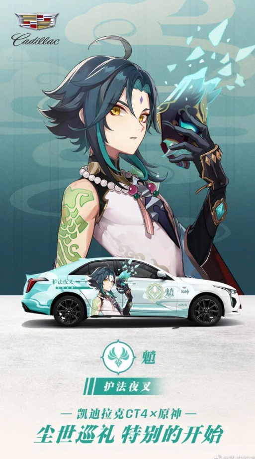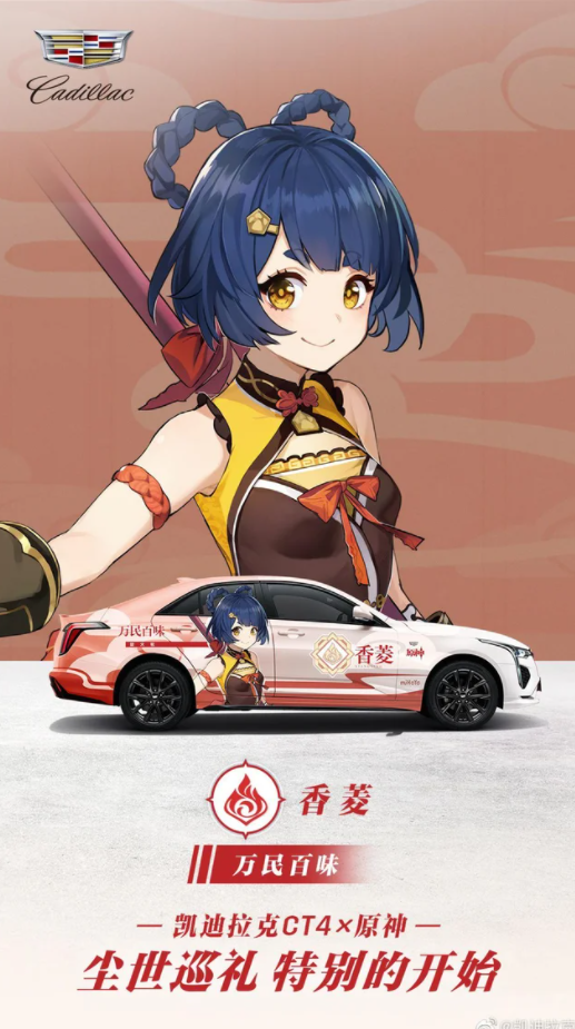 Разработчики из miHoYo и Cadillac объединились. Всего подготовили 4 седана Cadillac CT4, которые оформлены в стиле Genshin Impact с персонажами: Сяо, Кэ Цин, Сян Лин и Барбарой.