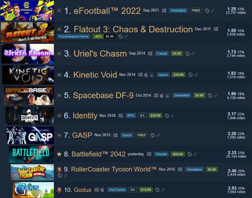 Под весом пользовательской критики игра оказалась в десятке самых низко оцененных игр за все время существования Steam.