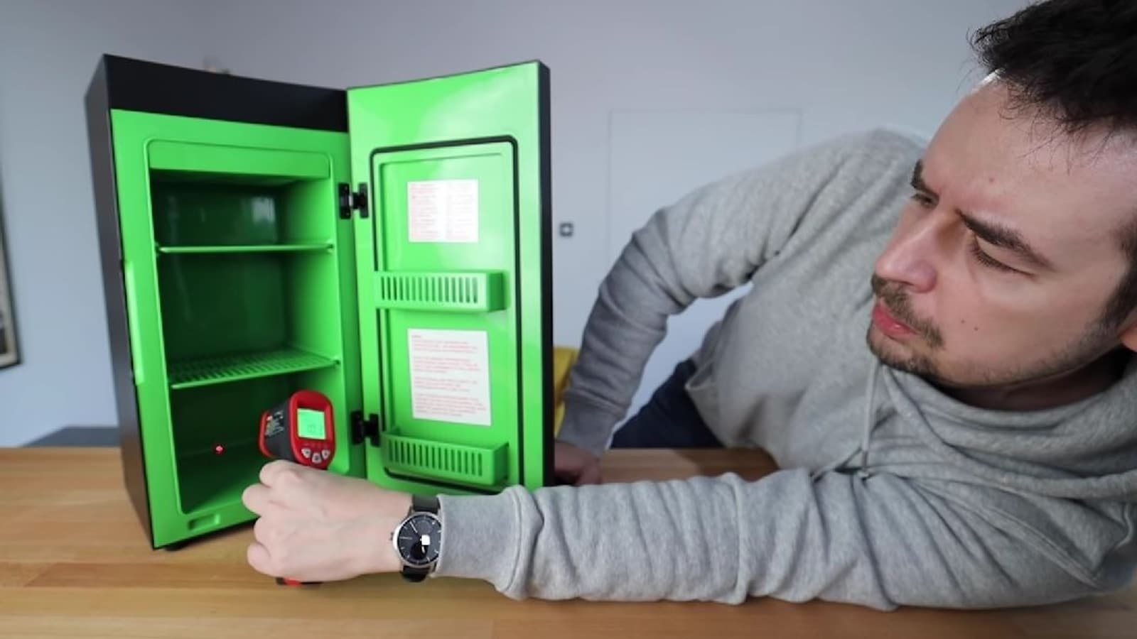 Kuba Klawiter рассказал, что мини-холодильник на удивление громкий и, судя по его замерам, обеспечивает максимальное охлаждение в 7 градусов. Причём производитель не рекомендует использовать устройство постоянно. Автор также упомянул о проблеме с открытием дверцы, о сомнительном качестве изготовления и внешнем виде.