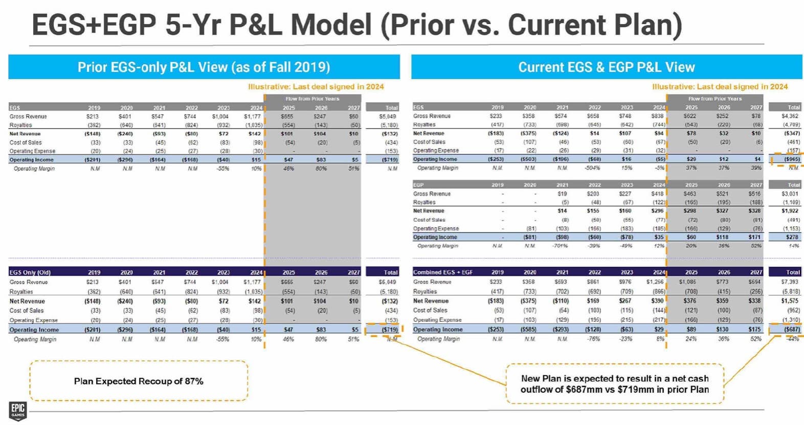 - 2024. Планируемый валовой доход от Epic Games Store по старому плану: 1177 млн долларов. По новому плану: 838 млн.