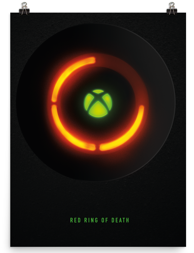 Плакат с «красным кольцом смерти» входит в серию из семи постеров, на которых также изображен логотип Xbox, сама консоль и плата.