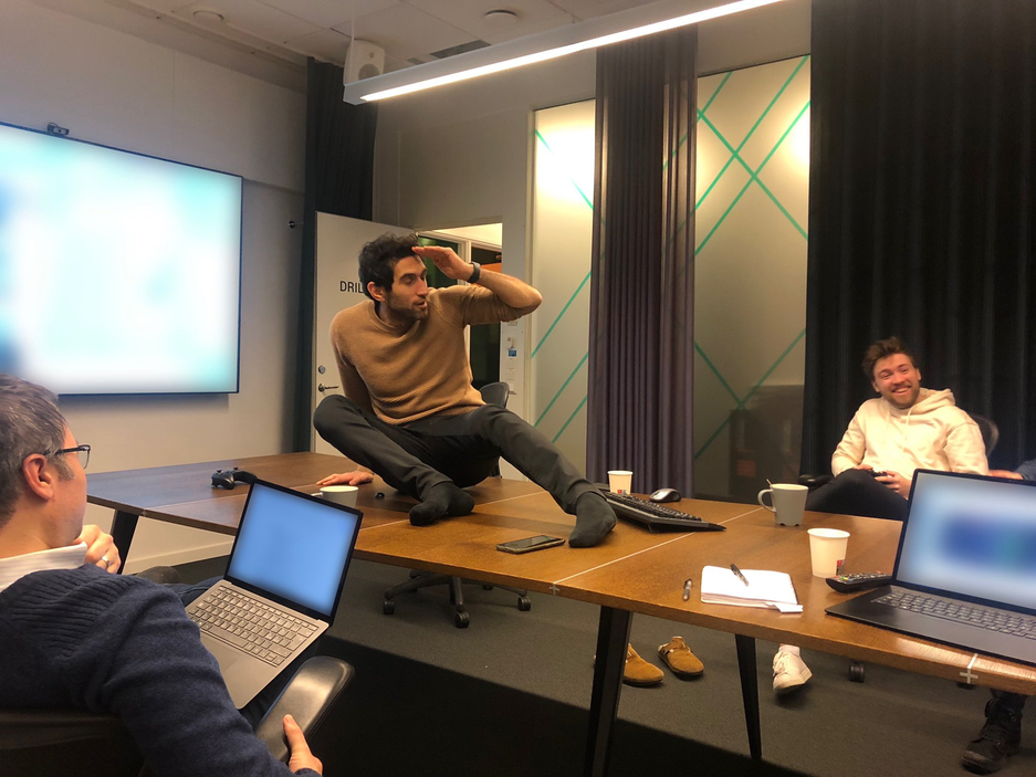Основатель Hazelight Studios Юсеф Фарес (Josef Fares) поделился в Twitter фотографией, на которой представлен рабочий процесс. Он позирует в носках на столе, обсуждая новый проект с коллегами. Слайд на стене и экраны ноутбуков подверглись цензуре, вероятно, чтобы в сеть раньше времени не попала информация.