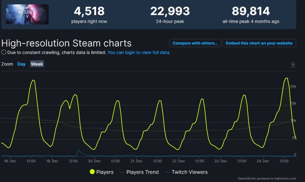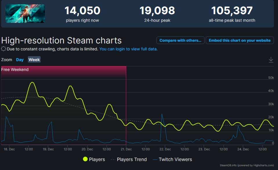 Сейчас показатели пятой части упали, но и Battlefield 2042 чувствует себя значительно хуже, чем на старте.