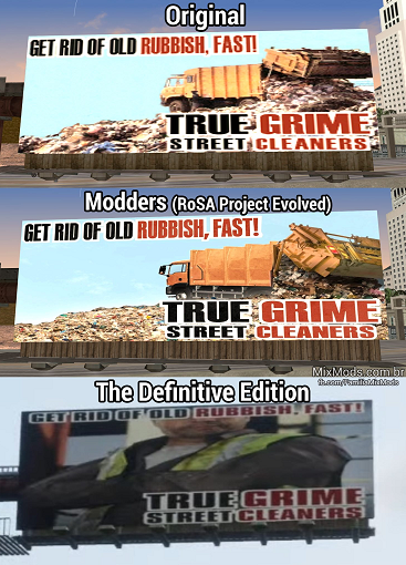 Для ремастера GTA San Andreas выпустили модификацию RoSA. Она заменяет текстуры на более качественные и более аутентичные (представленные разработчиками «официальные текстуры» порой сильно отличаются от оригинальных).