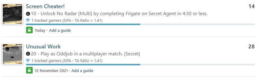 Так на сайте True Achievements, на котором отслеживают статистику достижений игроков на консолях Xbox появилась страница GoldenEye 007. Достижения снабжены картинками с кадрами из игры.