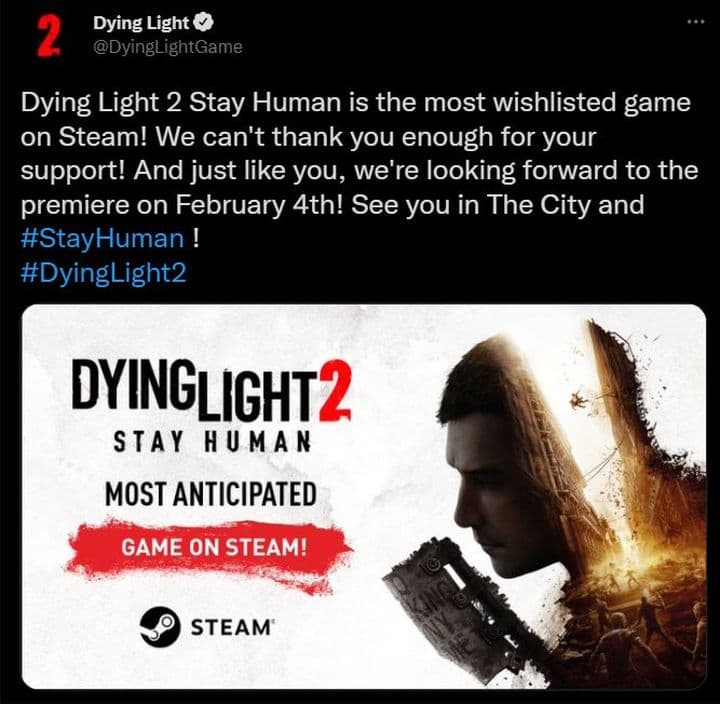 Премьера Dying Light 2 не за горами. И, как оказалось, игроки с нетерпением ждут зомби-боевик. Techland в Twitter сообщила, что это наиболее часто добавляемый проект в список желаемого в Steam.