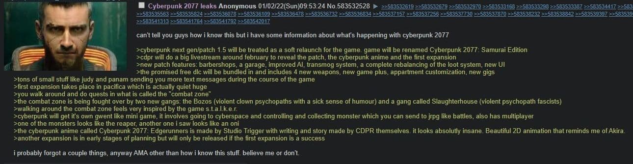 Информация звучала фантастично, а их источником был анонимный аккаунт на 4chan. Но теперь CD Projekt Red официально выступила против домыслов, опровергнув их правдивость. Но пиарщик студии не отрицает того факта, что некоторые из тезисов сообщения могут оказаться правдой, а часть очевидна.