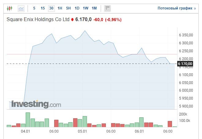 Цена акций Square Enix выросла почти на 8% после объявлений об инвестициях в NFT и блокчейн. Это самый большой однодневный рост с августа прошлого года.