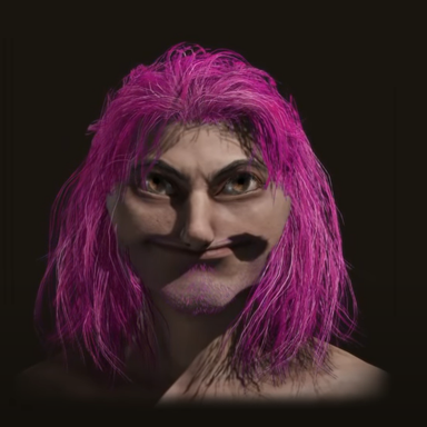 В процессе обработки часть модели на время исчезла и остались лишь волосы, глаза и элементы снаряжения.