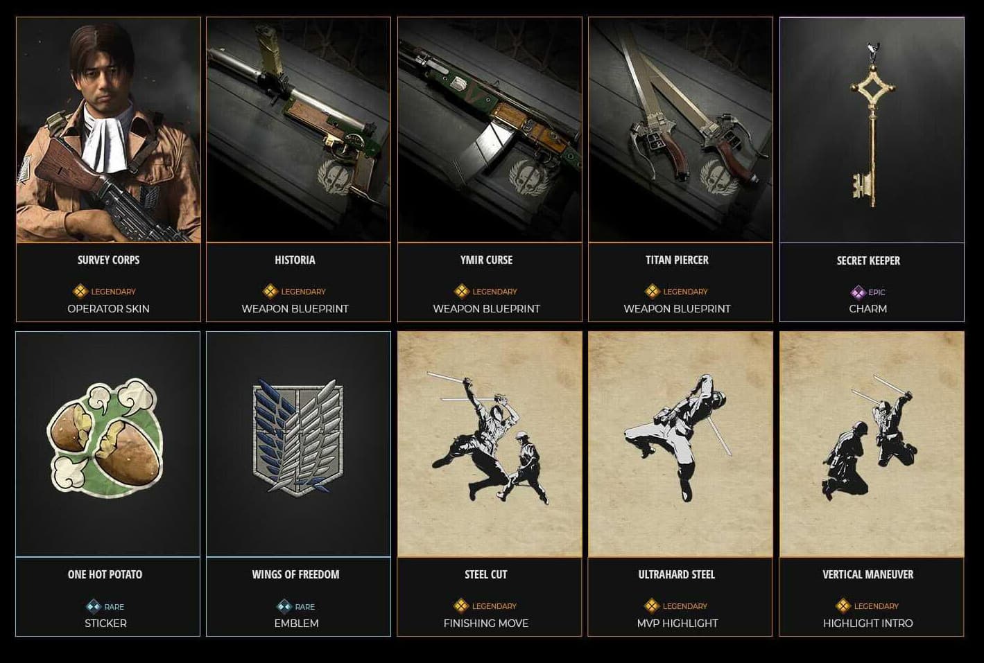 В рамках первого крупного обновления для Call of Duty: Vanguard и Warzone Pacific в игры будет добавлен тематический набор в стиле аниме «Атака Титанов». Игроки смогут нарядить Дэниэла Яцу в костюм «Сильнейшего бойца человечества» Леви Акермана, снарядив его пистолетом-пулеметом «Хисторией», штурмовой винтовкой «Проклятие Имир» и клинком под названием «Пронзатель титанов».