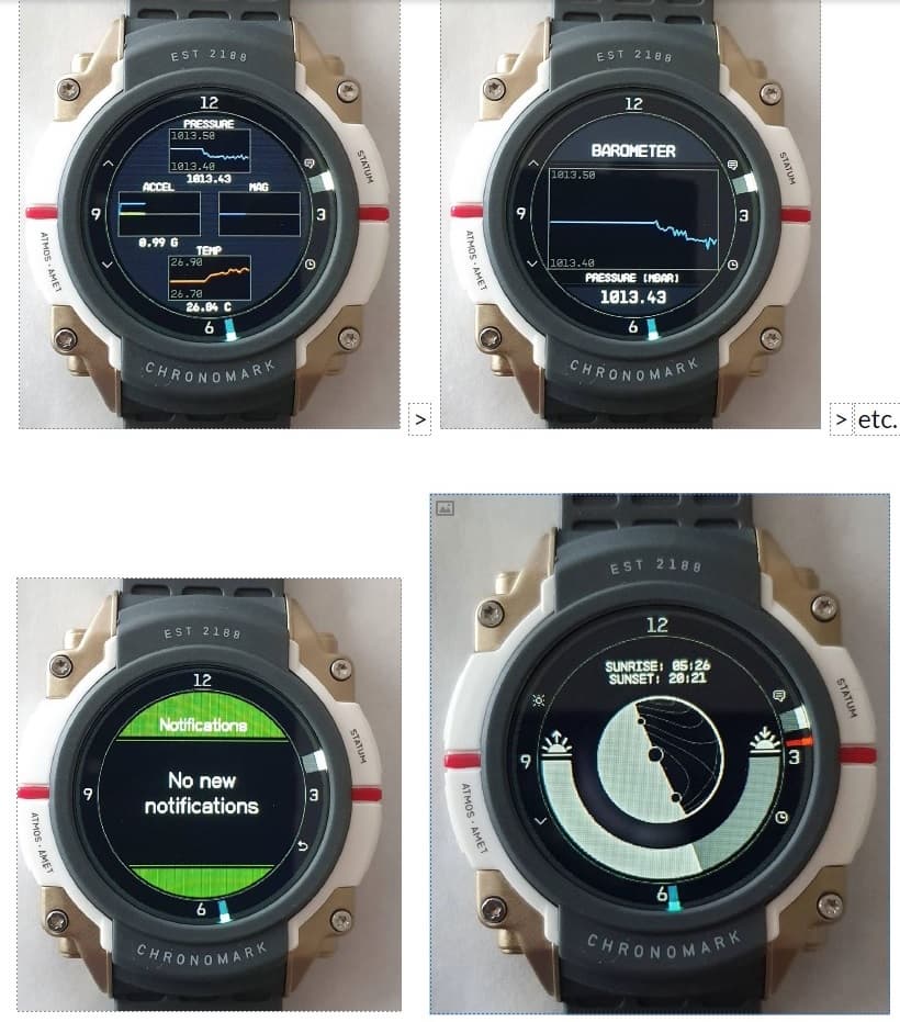 Смарт-часы будут устанавливать соединение через Bluetooth и, помимо отображения таких основных данных, как дата и время, представлять информацию о погоде, температуре, давлении, восходе и закате солнца, фазах луны. На гаджете также есть упоминания о Starfield - на одном из экранов изображен логотип, который есть на кадрах игры. Говорится об аккумуляторе ёмкостью 230 мАч – для сравнения у Apple Watch около 300, но у предполагаемого устройства больше производительность и, вероятно, более яркий экран.