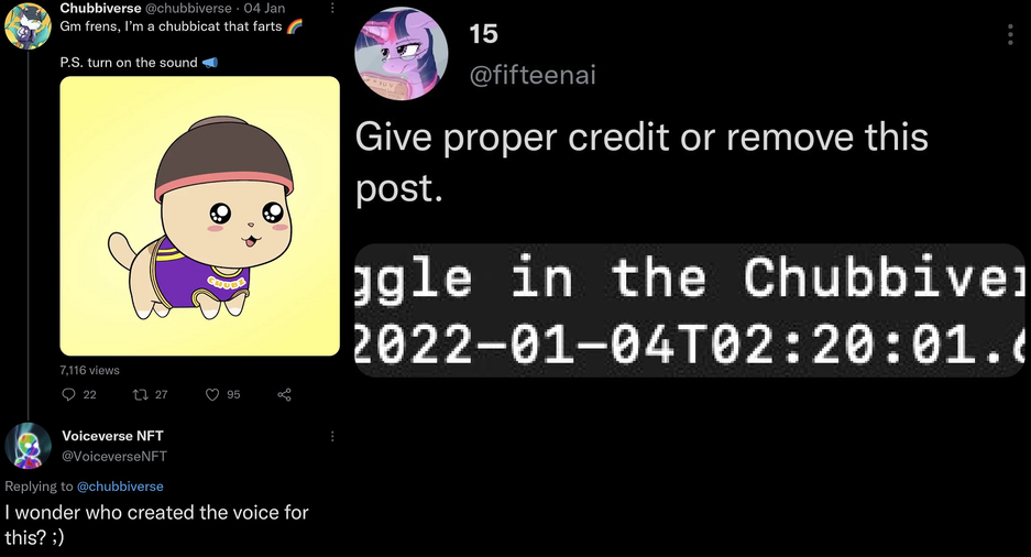 Вскоре в тот же день Voiceverse NFT уличили в воровстве.