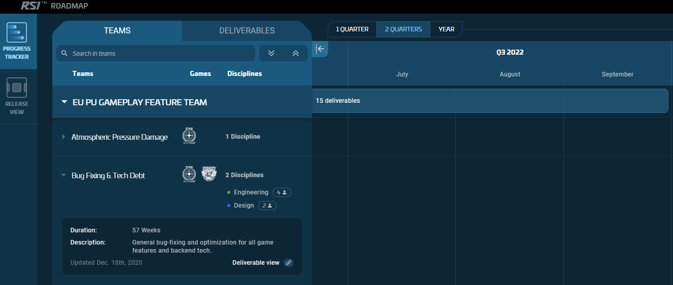 Для интересующихся доступен трекер деятельности команды Star Citizen с фильтром по группам.