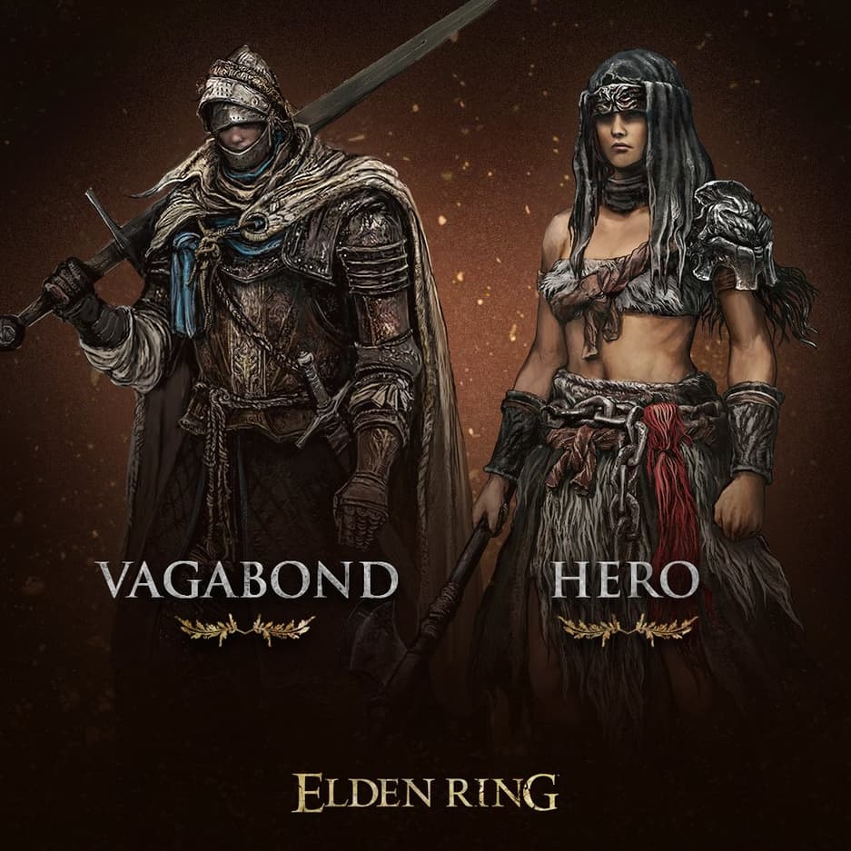 В фокусе внимания Vagabond и Hero. Судя по телосложению и одеяниям, это мужчина-воин в тяжёлой броне и женщина в лёгкой соответственно.