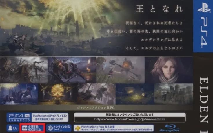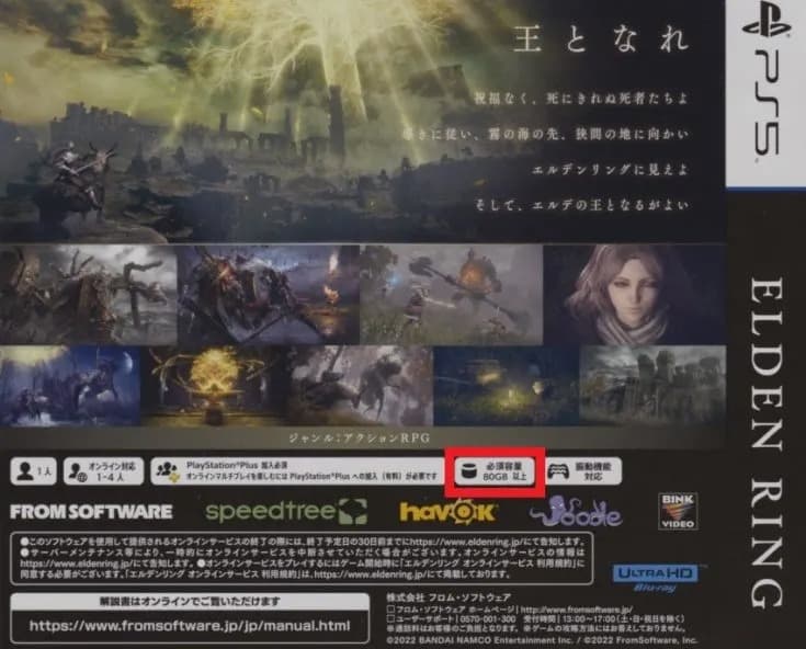 В сеть попала информация с бокс-арта Elden Ring, где сообщается сколько игра займёт на PlayStation 4 и PlayStation 5.