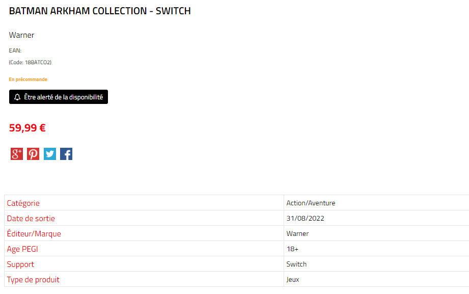 На сайте французского WTT установлена стоимость сборника «Batman Arkham Collection – Switch» в 59,99 евро. При этом никаких изображений пока не успели добавить.