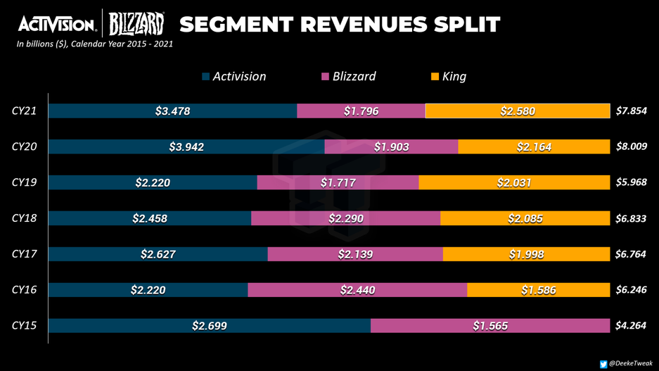 В финансовом отчёте Activision за 2021 финансовый год указано, что Blizzard заработала намного меньше, чем издатель мобильных игр King, также принадлежащий Activision Blizzard.