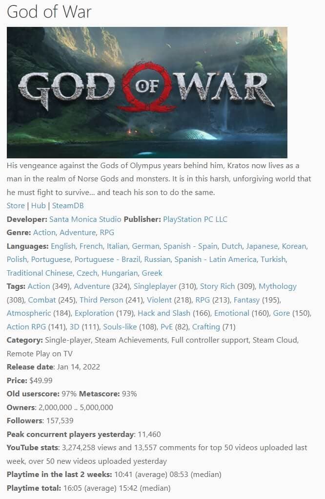 Теоретически реальные продажи на ПК за один месяц могут намного превышать два миллиона. Также God of War доступна в Epic Games Store.