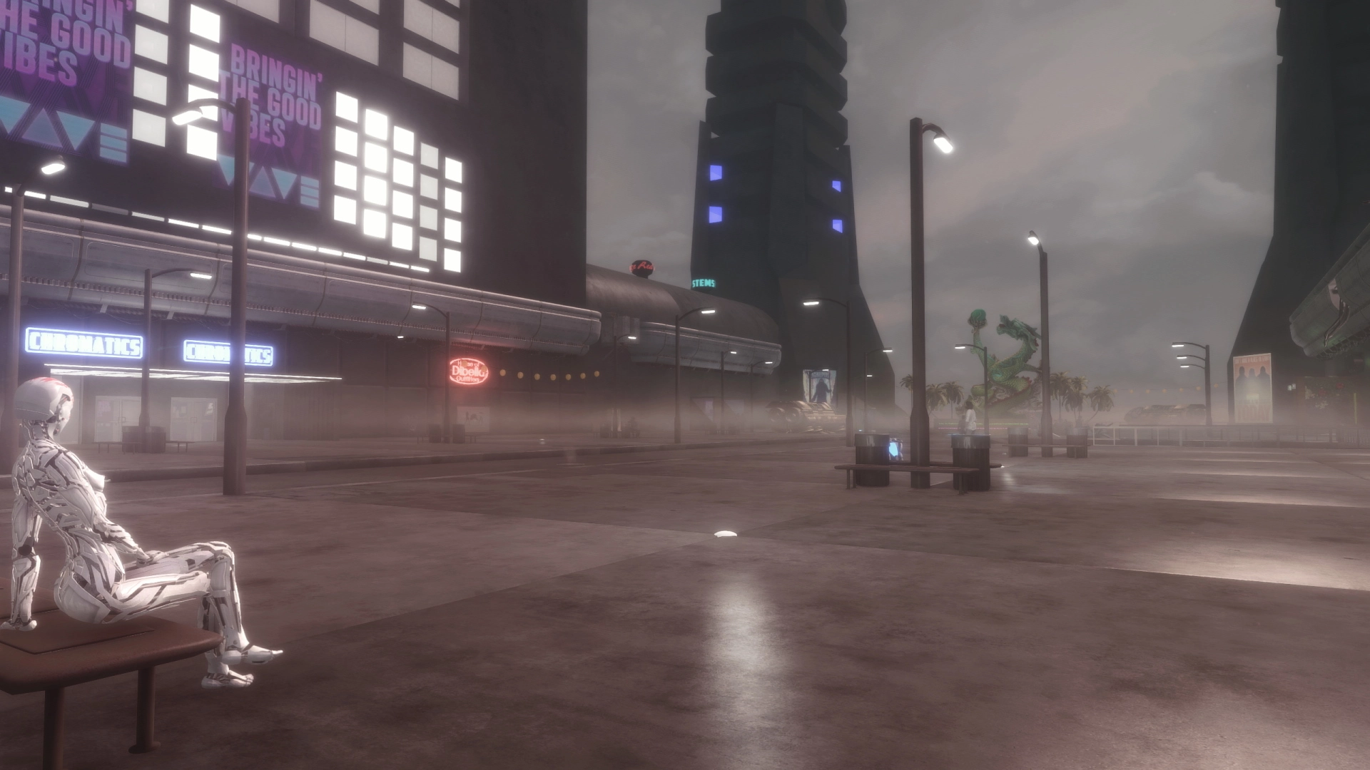 Ролик с прогулкой по сай-фай городу (начинается с первой минуты). Жители довольно разнообразные, можно повстречать даже андроидов.