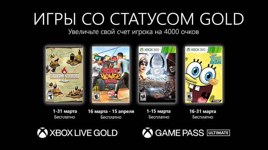 Microsoft опубликовала список игр, которые получат участники программ Xbox Live Gold и Xbox Game Pass Ultimate в ближайший месяц. Пользователи будут играть в четыре продукта на консолях двух поколений.