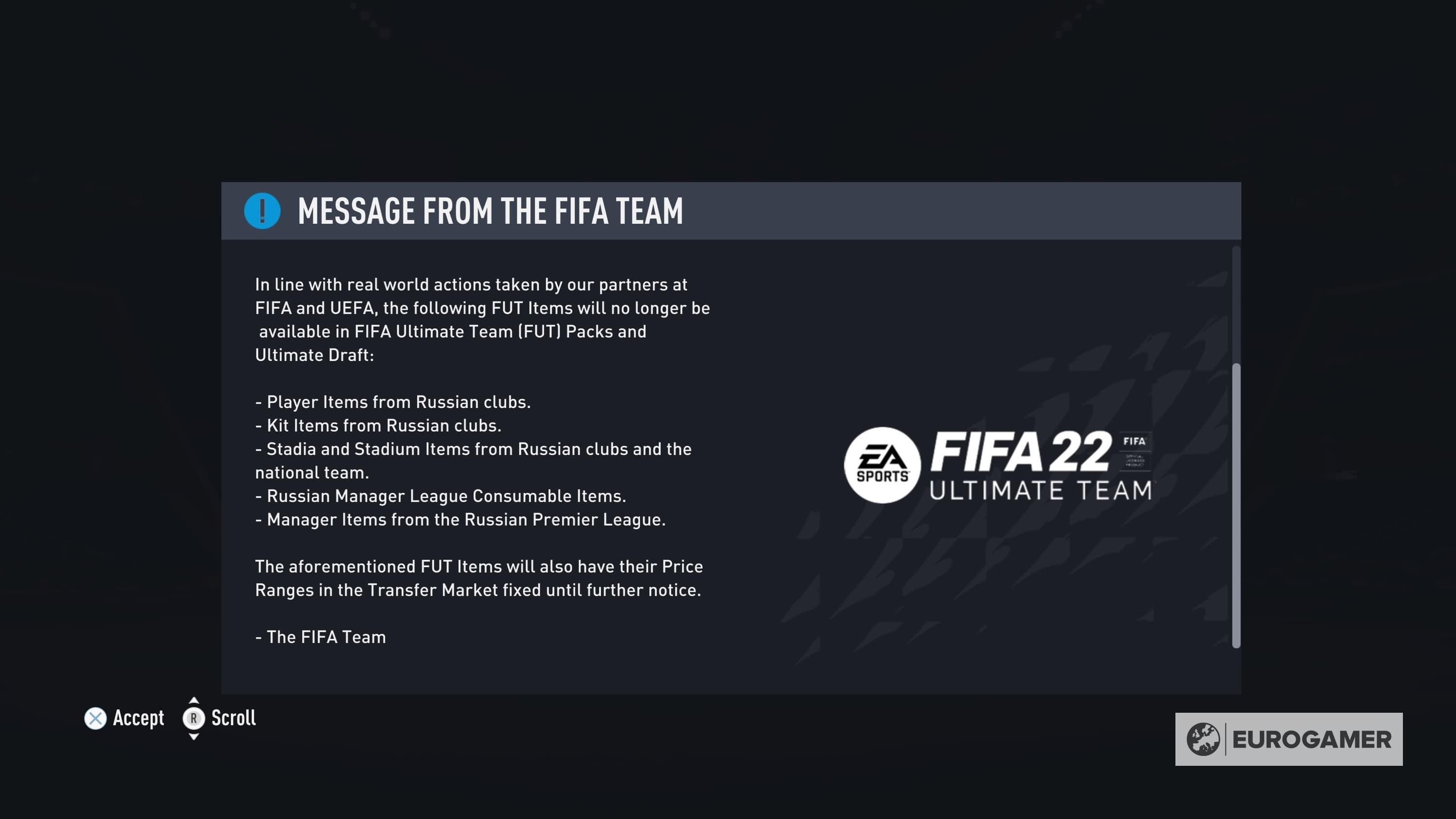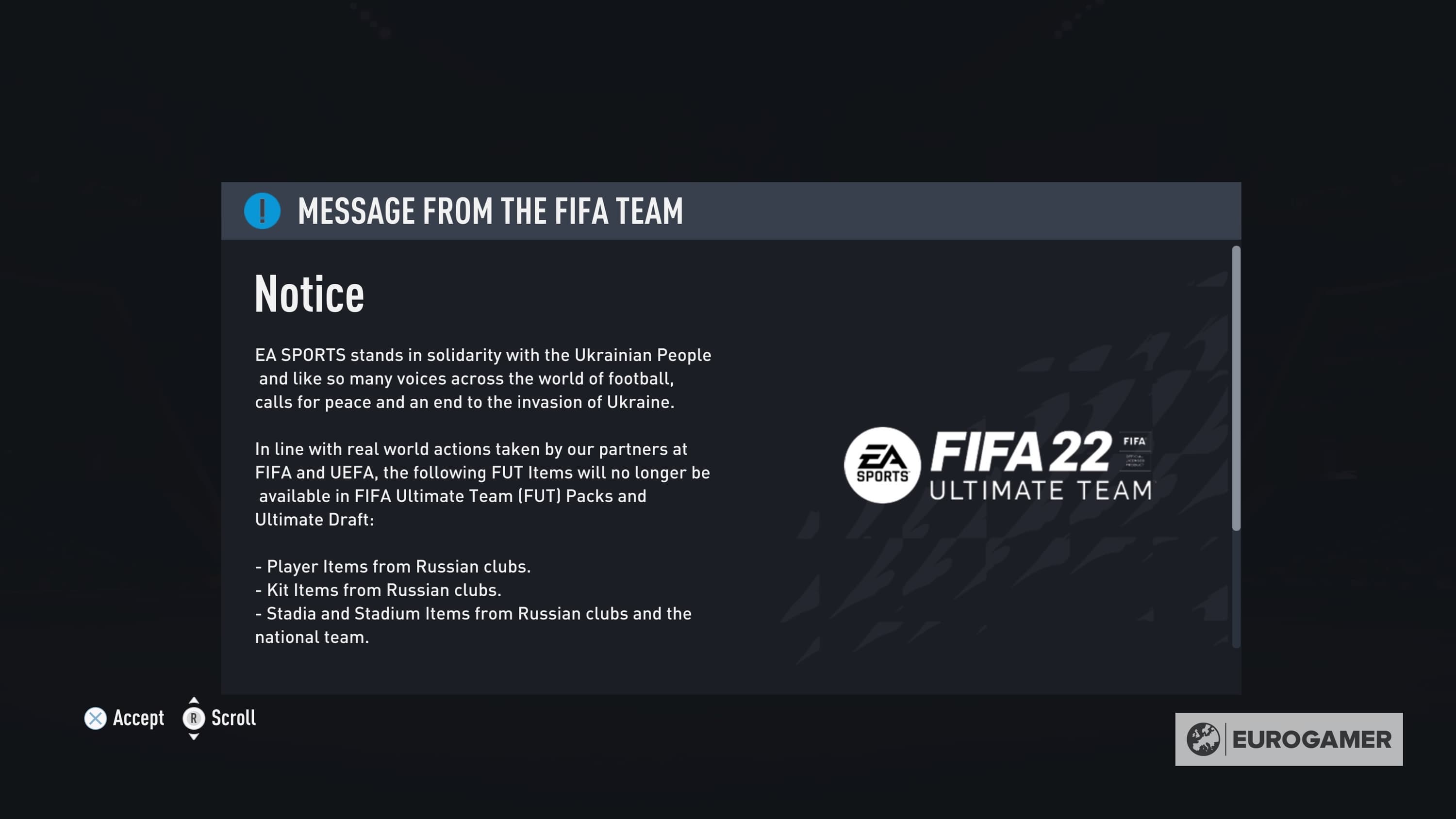 Предметы, которые уже есть у игроков, останутся, но в лутбоксах больше не будет игроков из России. Пользователи по-прежнему могут торговать имеющимися картами на внутриигровом рынке и украшать указанными предметами стадионы. Electronic Arts подчеркивает, что изменения сделаны в соответствии с действиями, предпринятыми партнерами из FIFA и UEFA.