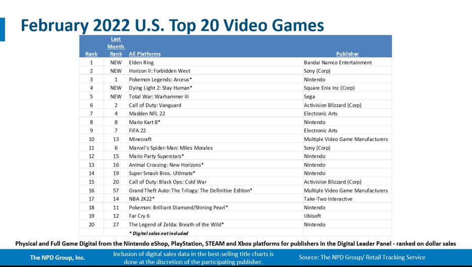 Счетоводы NPD Group сообщают, что Elden Ring возглавила февральские рейтинги продаж, став одной из самых популярных игр не только на Xbox, но и PlayStation. Более того, продажи нового проекта From Software на консоли Sony были даже выше, чем у Horizon Forbidden West, релизу которой предшествовала мощнейшая рекламная кампания Sony Interactive Entertainment.