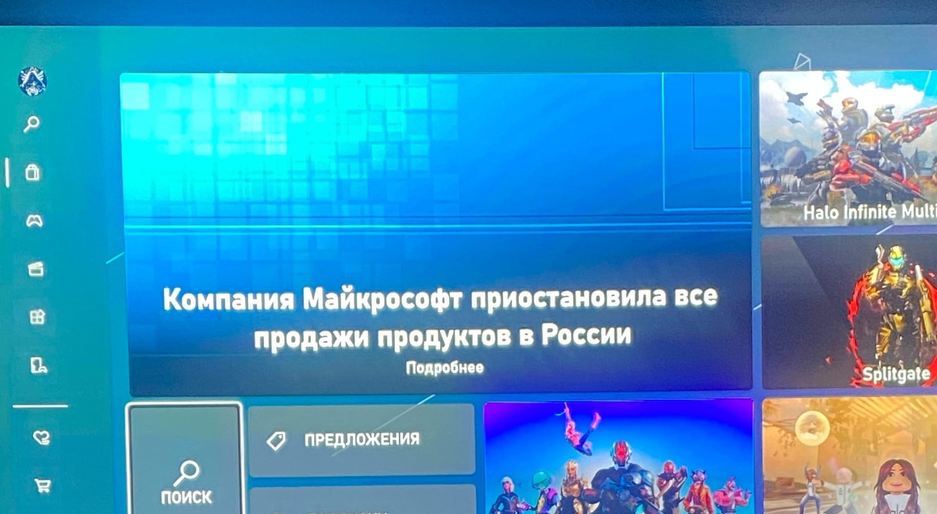 В ролике он показывает, что простое переключение русского языка на английский и последующая перезагрузка Xbox убирает сообщение: «Компания Майкрософт приостановила все продажи продуктов в России».