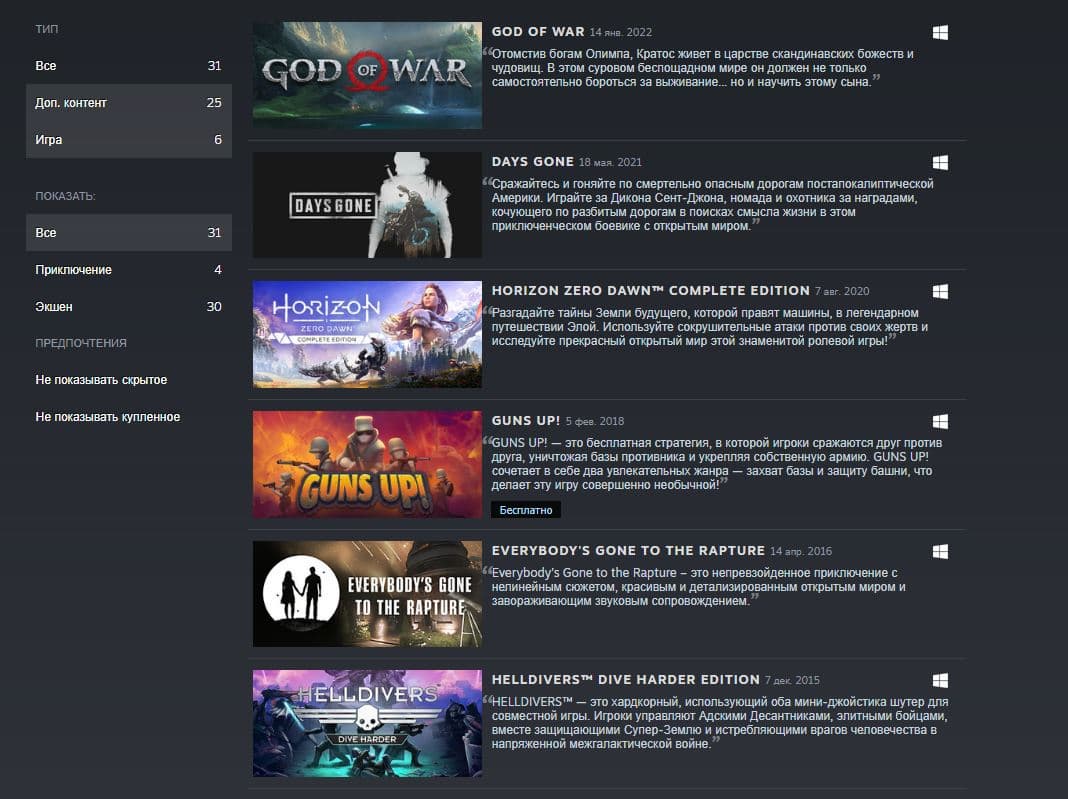God of War, Days Gone, Horizon: Zero Dawn, Everybody's Gone to the Rapture и HELLDIVERS Dive Harder Edition теперь невозможно приобрести.
