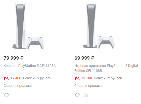 На PS5 Digital Edition установили ценник в 69 999 рублей, а обычная PS5 обойдётся в 79 999 рублей.