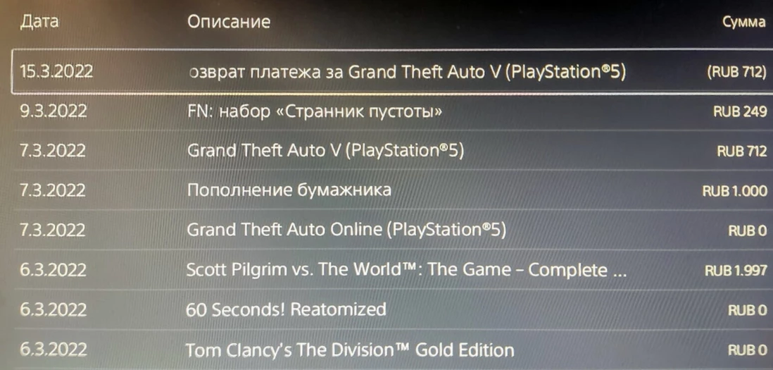 Sony начала оформлять возврат средств за GTA 5. При этом они поступают на счёт PSN. Поскольку в России PS Store отключили, то деньги нельзя использовать. Неизвестно, когда сервис включат.