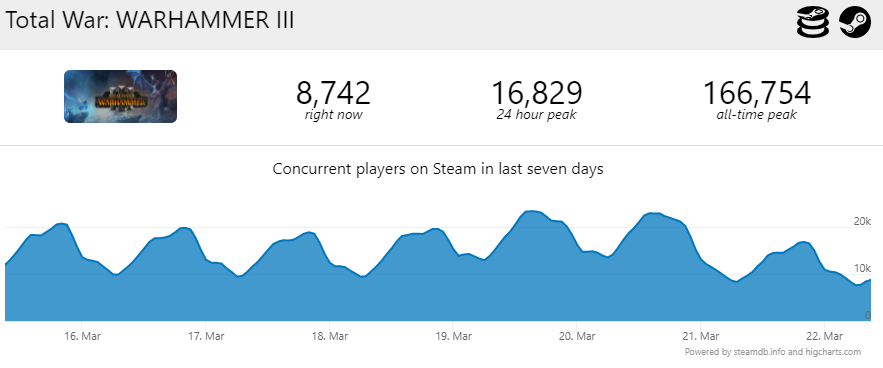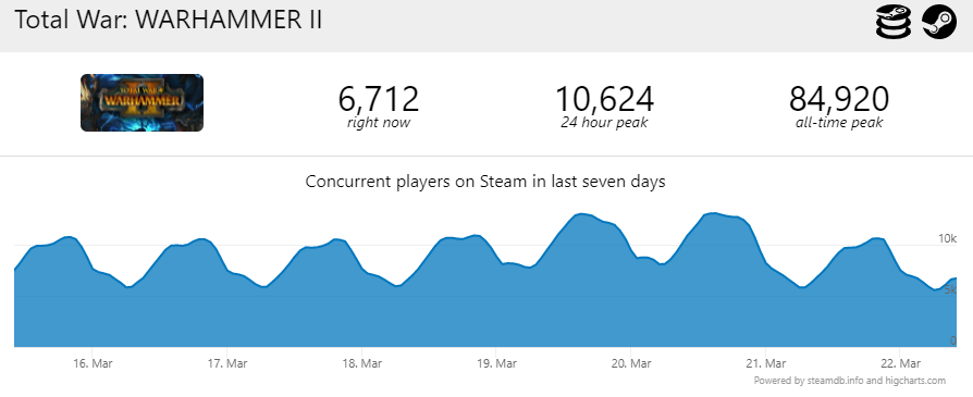 Для сравнения, статистика онлайна Total War Warhammer 2, которую выпустили в 2017 году.