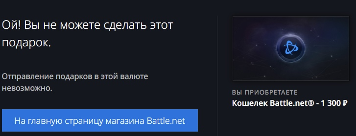 Игроки больше не смогут пополнять кошелёк Battle.net в подарок рублями. Ранее можно было переводить (дарить) друг другу рубли на счёт кошелька, но лазейку прикрыли. При попытке осуществить операцию выдаёт ошибку «Отправление подарков в этой валюте [рубли] невозможно».
