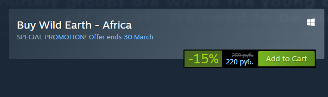 Несмотря на приостановку продаж в России, на момент публикации Wild Earth – Africa можно купить за 220 рублей.