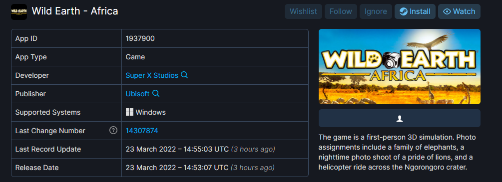 Теперь в Steam появилась страница Wild Earth – Africa. В графе «издатель» в Steam указали Majesco Entertainment и Ubisoft.