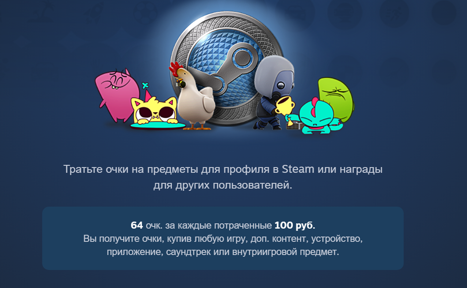 В сервисе Steam за совершаемые покупки предлагают бонусные очки. Их можно потратить в специальном магазине «очков» на разнообразные украшения для профиля Steam, темы клавиатуры Steam Deck, эффекты чата, стикеры и смайлики.
