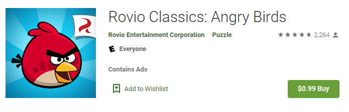 В описании Rovio Classics: Angry Birds акцентируют внимание на отсутствии внутриигрового магазина (IAP) и рекламы.