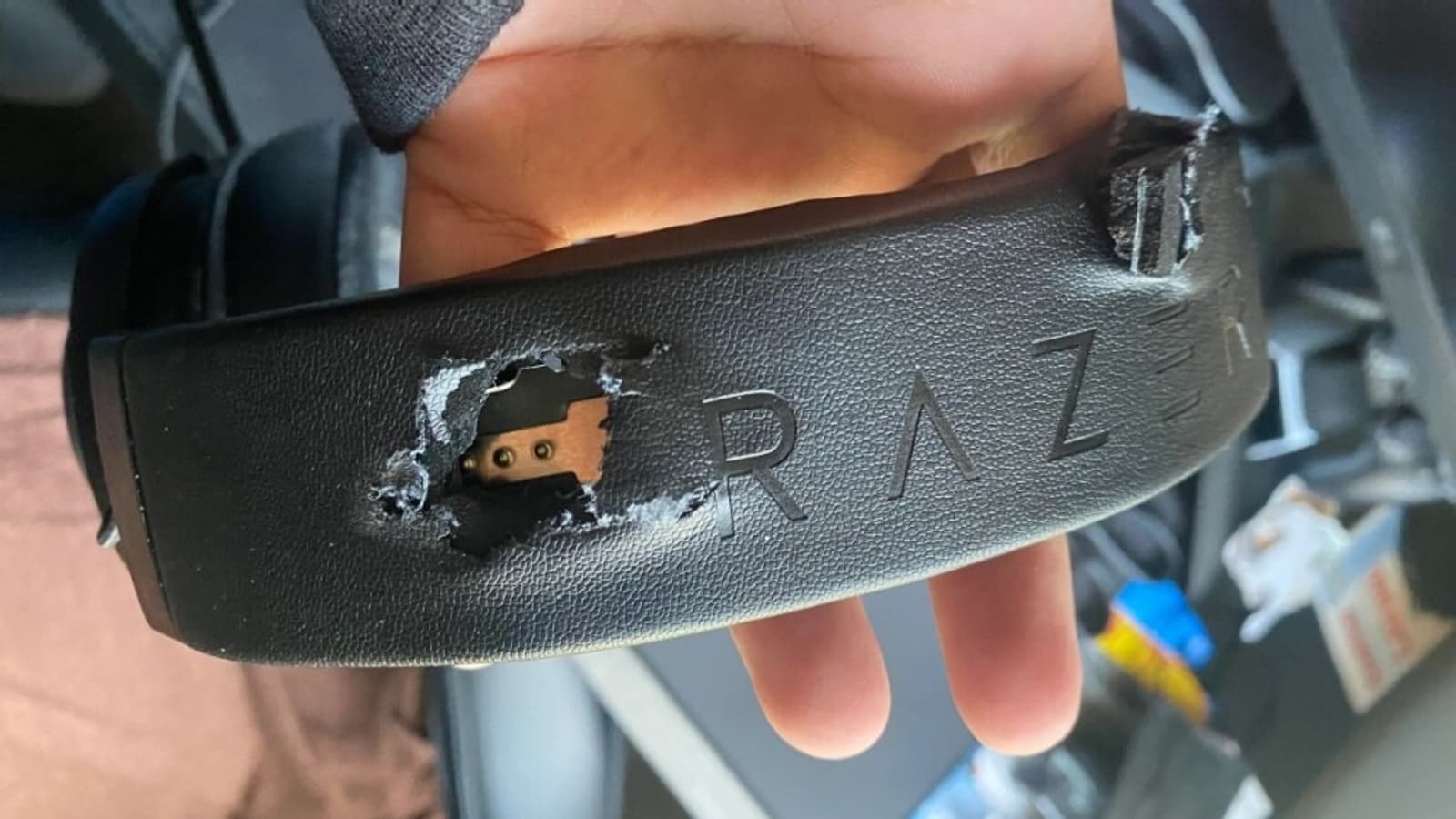 «Привет всем, кто это увидит. Я пытаюсь связаться с кем-нибудь из Razer, чтобы от всего сердца поблагодарить. В среду утром в 10:30 шальная пуля влетела в окно и попала в наушники Razer на макушке головы. Если бы не качественные наушники, я бы умер в 18 лет. Я даже не могу представить, через какую боль пришлось бы пройти моей семье и друзьям».