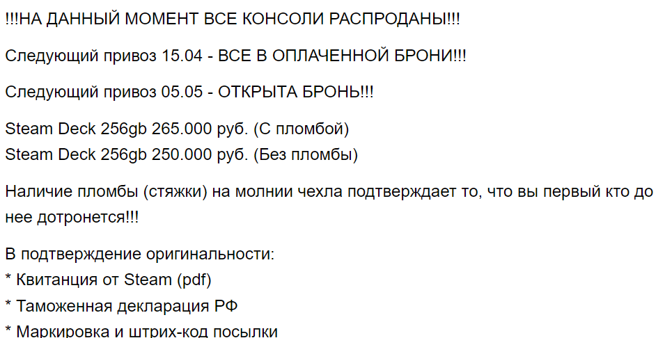 Впрочем, не все предприниматели так высоко оценили новое устройство Valve. Порой Steam Deck продают чуть дешевле