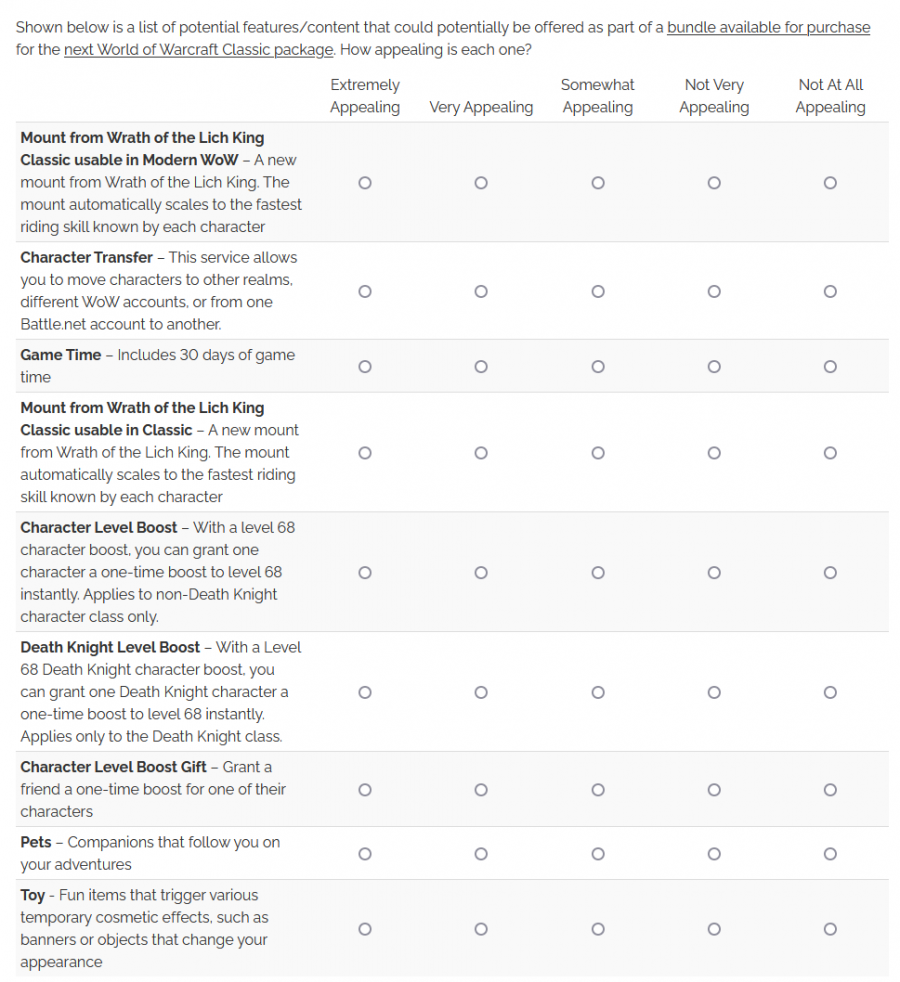 В новом опросе компания пытается определить мнение сообщества World of Warcraft по вопросу ценообразования дополнения, а также о том, какие бонусы хотелось бы получить игрокам.