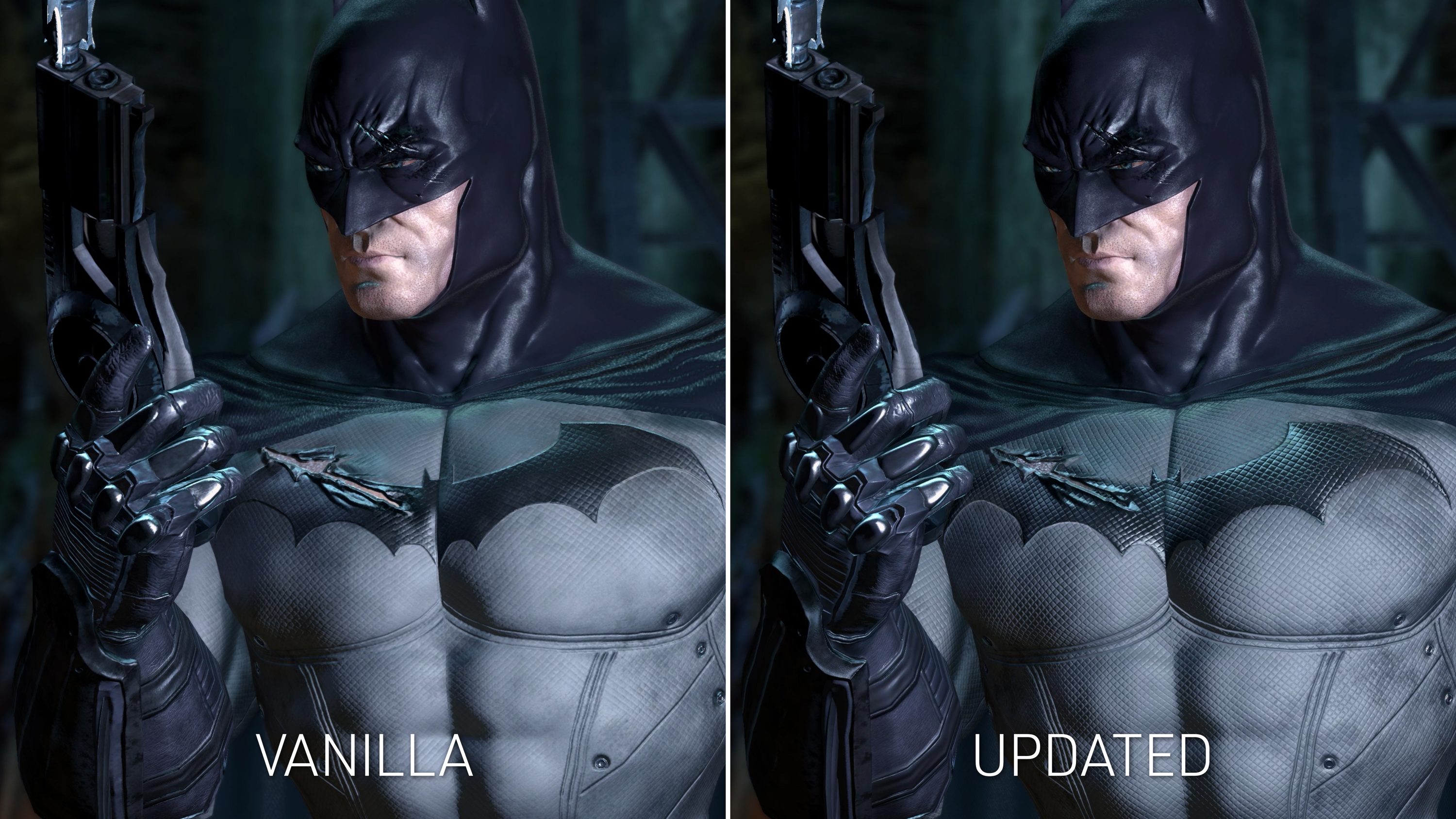 Набор HD-текстур должен улучшить общее качество окружения и персонажей Batman Arkham Asylum. Например, улучшен материал костюма Бэтмена и его система повреждения, которая теперь напоминает представленную в сиквеле Arkham City.