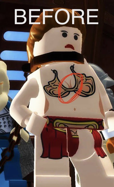 При ближайшем рассмотрении выяснилось, что выдающиеся формы принцессы Леи по какой-то причине решили скорректировать в LEGO Star Wars: The Skywalker Saga.