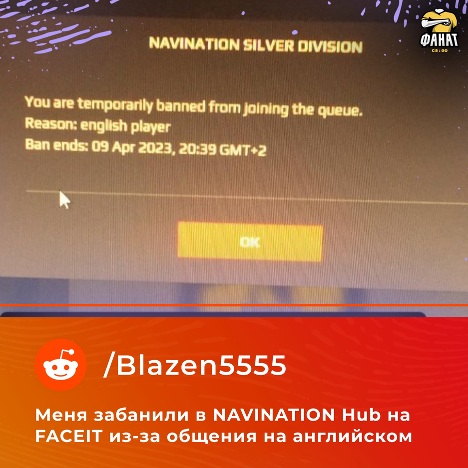 В сообществе «ФАНАТ CS:GO | НОВОСТИ КС ГО» в социальной сети VK рассказали о том, как можно легко получить бан в хабе от украинской организации NAVI.