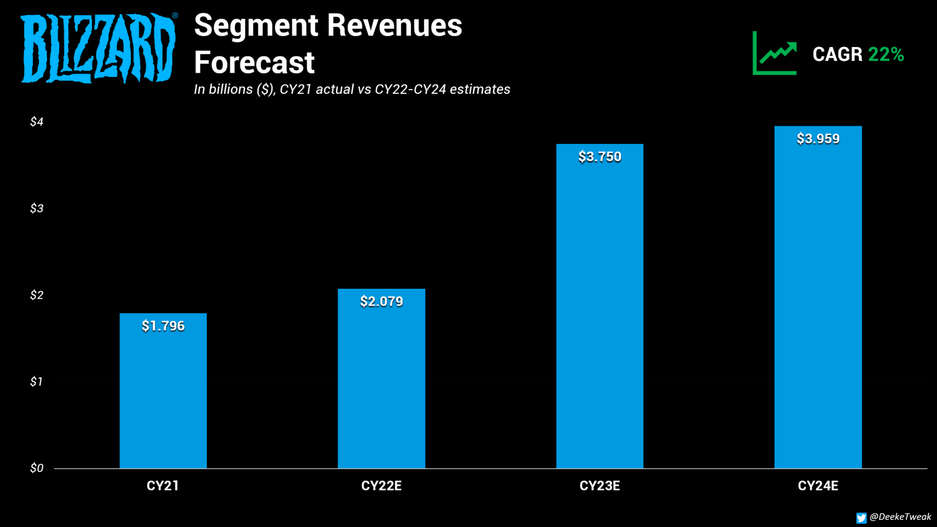 Увеличение выручки Blizzard прогнозируется в среднем на 22% в течение четырехлетнего периода, и это самый большой скачок за год среди всех сегментов компании.