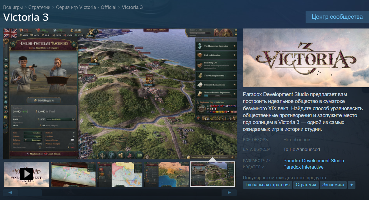 Судя по обсуждения на форуме Reddit, техническими проблемами дело не ограничивается. Как выяснилось, в Victoria 3 внутри экономики есть «спирали смерти», на определённых этапах пока не выверен баланс и потому экономика может легко обрушиться.